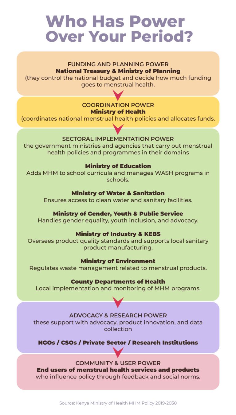 - Adopt rights-based budgeting — ring-fence national and county funds for menstrual health under health, education, and gender programs.